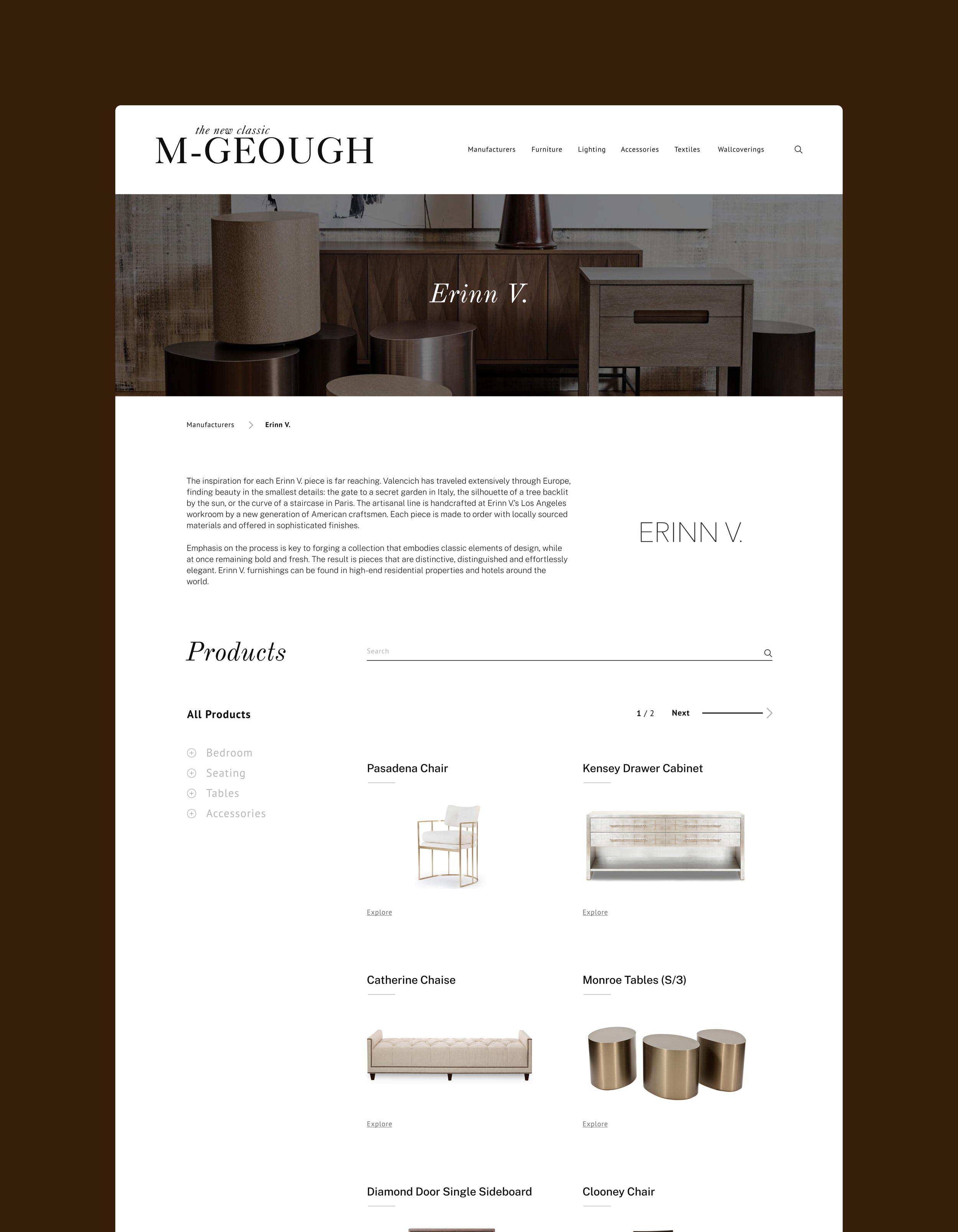 M-Geough has been a leader in the world of interior design for nearly a century. Needless to say, it was truly an honor to redesign their website. They have been providing their clients with the best furnishings, lighting, fabrics, and wall-coverings for years. The problem was that even with a strong clientele and ideal reputation, they didn’t have a well-functioning website. Before this redesign, their website was just a simple page with an endless list of products paired with an unstructured navigation. We all agreed that we would start at the bottom and build an entirely new website for M-Geough.